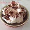 Reszeld le az almát, majd vízben főzd meg, Utána botmixerrel turmixold pépesre, add hozzá a vaníliaport, tedd vissza főni. Végül keverj hozzá süteménylisztet, hogy sűrű legyen. Nálam 1-2 evőkanál. Tetejét díszítheted gyümölcsökkel, magokkal.