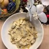 Mivel nálam nem diétázó családtagoknak készült, törött krumplit készítettem hozzá a hagyományos módon. Természetesen én nem ezzel enném, hanem bulgurral, kuszkusszal, vagy édesburgonya, paszternál püré is jó lehet hozzá.
