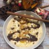 Az, hogy mi kerül a tetejére teljesen opcionális, diétától, ízléstől függ. Én a fent írtakkal ettem. Az étcsokit késsel apró darabokra vágtam, a mogyoróvajat forró vízzel kevertem ki, hogy folyós legyen.