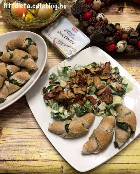 A recept Szafi perec receptje, amiből én sós mázas kifliket készítettem korábban. Ennek a receptjét IDE kattintva megtaláljátok. Most az évszaknak megfelelően egy kis medvehagymával dobtam fel, és sajtkrémet kentem közé. Isteni reggeli lett belőle egy nagy adag salátával és tojással.