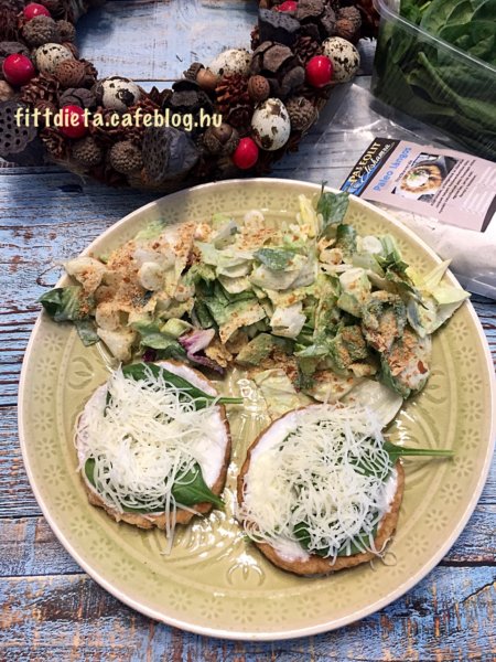 A totu krémet ( vagy nem paleo diétában natúr joghurtot) kikevertem fokhagyma porral és sóval. Ezzel megkentem a lángost, majd spenót leveleket tettem rá. Ha nem paleo diétán vagyunk reszelt sajtot is tehetünk rá.
