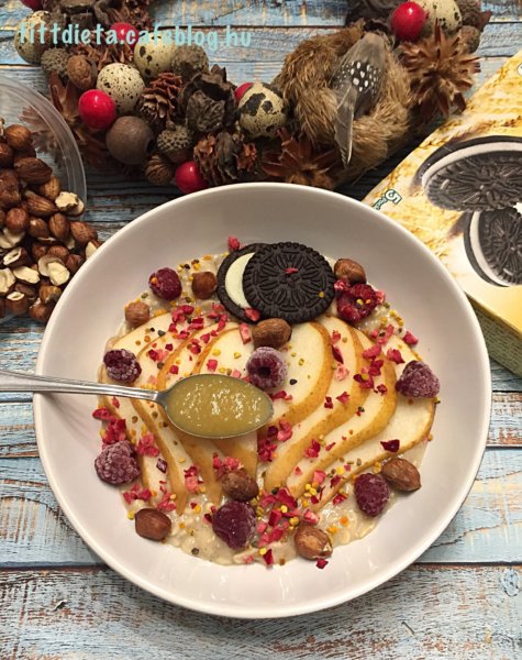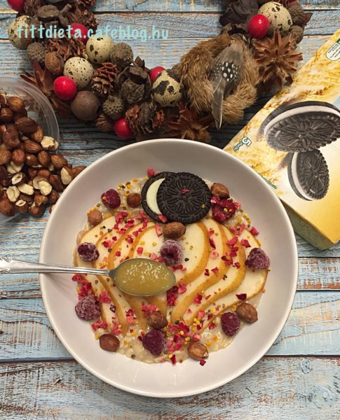 Néha kedvet kapok, és napokig zabkását eszek. Igazából megunhatatlan, mert csak a fantázia szab határt, hogyan variálod. A tetején gluténmentes oreo keksz, és szezonális gyümölcsök is vannak. További zabkása recepteket IDE kattintva találtok.