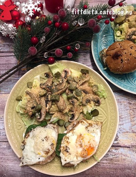 A zsemlékbe került light vajkrém, fekete erdei sonka, spenót, tojásrántotta és light sajt. Maga a zsemle paleo, de ebben a formában a szendvics nem. (A töltelék miatt) Természetesen az kerül a zsemlébe amit szeretnénk, diéta és ízlés szerint. Mellé salátát ettünk és a maradék rántottát.