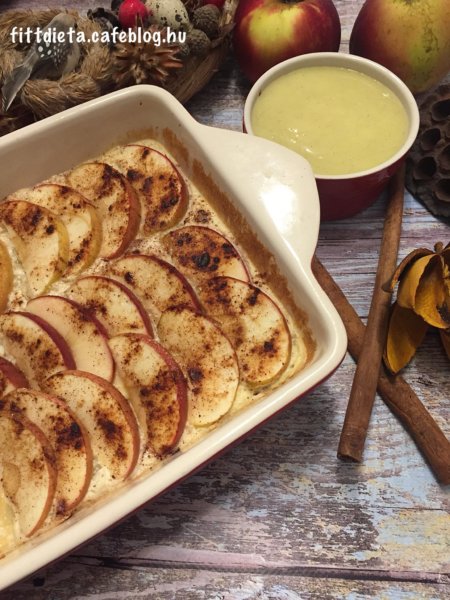 A zabpelyhet, a fehérjeport és a 20 g eritritet beleöntöm egy lábasba és a 2 dl mandulatejjel és 2 dl vízzel felteszem főzni. Közben ízesítem a vanília aromával vagy vanília rúddal és folyamatos kevergetés mellett forrásig főzöm. Ezután leveszem a tűzről és hagyom langyosra kihűlni. A tojást szétválasztom, és a tojásfehérjét és a tojásfehérjelét kemény habbá verem egy csipet sóval. Mikor a hab félkemény a két teáskanál eritrittel kemény habbá verjük. A tojássárgáját a kihűlt zabkásához keverjük, majd óvatosan a habbá vert tojásfehérjét is hozzákeverjük. Az egészet egy hőálló tálba öntjük. Az almát negyedekre vágjuk és vékony szeletekre szeleteljük. A zabkása tetejére rakjuk a szeletelt almát amit megszórunk 2 teáskanál eritrittel és őrölt fahéjjal. Előmelegített sütőben 180 fokon 25 percig sütjük. A vaníilás pudingport megfőzzük a mandulatejjel és vízzel. Ha besűrűsödött lehúzzuk a tűzről , és tálalás előtt a sült zabkására öntjük.