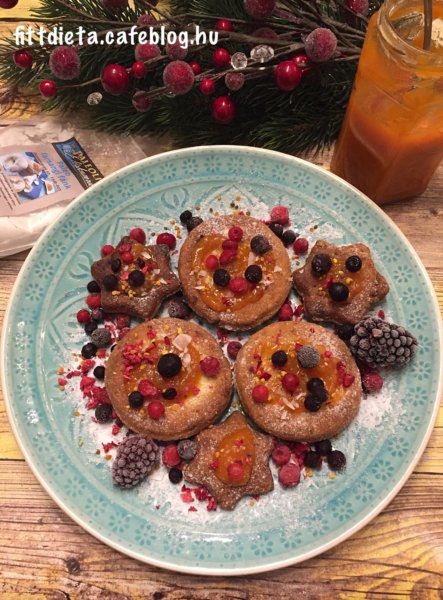 A tojást az eritrittel, vaníliás eritrittel és a vízzel kikeverjük. Hozzáadjuk a lisztkeveréket és a bambuszrost lisztet. Pihentessük 15 percig a tésztát. Lisztezett deszkán, vagy szilikonos deszkán gyúrjuk át, majd nyújtsuk ki egy centiméter vastagságúra. Én három darab kört és négy csillagot szaggattam belőle. Az ujjammal a közepébe mélyedést nyomtam. Egy magas falú edénybe kókuszolajat melegítünk, és 3-3 perc alatt mindkét oldalát megsütjük. Először azt az oldalt helyezzük lefelé amelyiken a mélyedés van. Papírtörlőre szedjük, és felitatjuk a maradék zsírt. A közepére lekvárt teszünk, és megszórjuk a fentebb leírt hozzávalókkal.