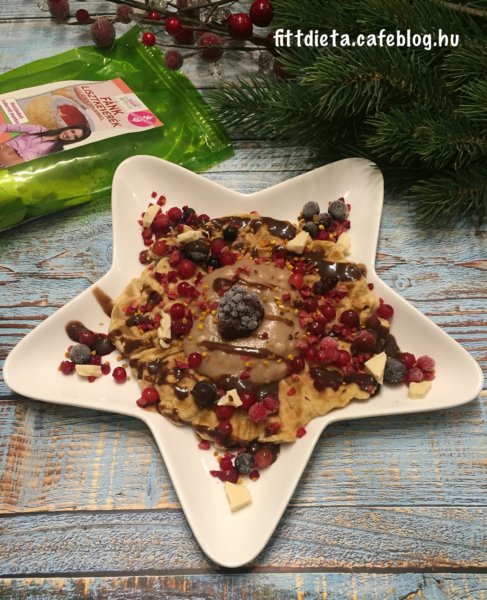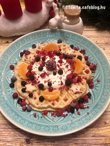 A gofri tészta folyékony hozzávalóit összekeverjük és beleszórjuk a fánk lisztkeveréket. Pihentetjük 5 percig. A gofri sütőt kevés kókuszolajjal kikenjük, majd beleöntjük a tésztát és készre sütjük. A túrót ( vagy totu-t) kikeverjük a natúr joghurttal ( vagy növényi tejjel vagy totu krémmel), az eritrittel és vaníliás eritrittel. Majd a tetejére tesszük. A gyümölcsökkel és a többi hozzávalóval díszítjük. Ízlés és diéta szerint bármit tehetünk a tetejére. Ebben az esetben a tápérték változik.