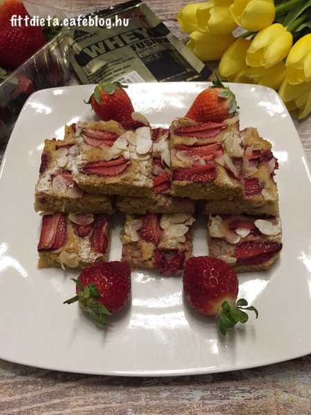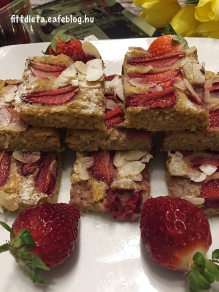 A cukkinit megpucoljuk és kis lyukú reszelőn lereszeljük. Az eper és a szeletelt mandula kivételével mindent összekeverünk csomómentesre. Egy sütőpapírral bélelt hőálló edénybe öntjük a masszát. Az epret szeletekre vágjuk, és egyenletesen a massza tetejére tesszük. Megszórjuk a tetejét a szeletelt mandulával. Előmelegített sütőben 180 fokon 30 percig sütjük. Ha kihűlt porrá őrölt eritrittel ( vagy más természetes édesítővel) megszórjuk.