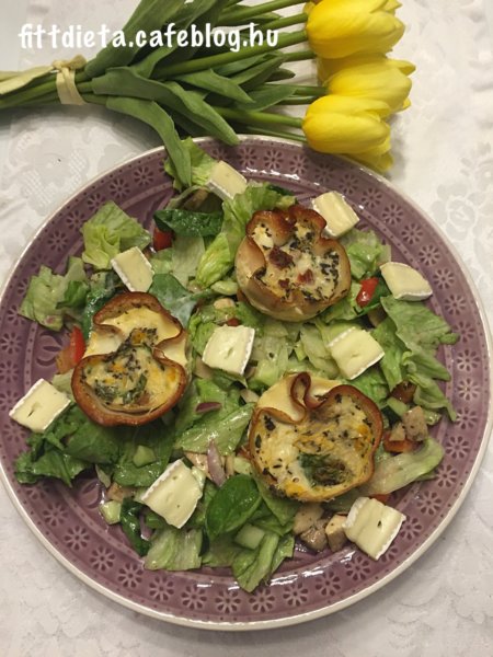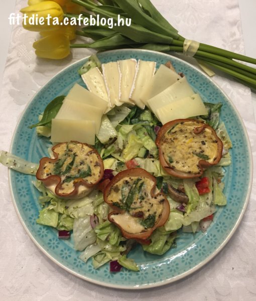 A cukkinit lereszeljük kis lyukú reszelőn. A csirkemell sonkán kívül mindent összekeverünk. Szilikonos muffin formákat egy egy szelet csirkemell sonkával kibélelünk és ebbe töltjük a tojásos masszát. Nekem 9 darab muffin lett ebből a mennyiségből. Előmelegített sütőben 180 fokon 30-35 percig sütjük. Egy nagy adag salátával tálaltam.Tökéletes például vacsorára is.