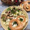 Egy éles késsel átlós irányokba bevagdosom, majd kör alakú pogácsa szaggatóval kiszaggatom. Sütőpapírral bélelt tepsire teszem, tojással lekenem a tetejét.