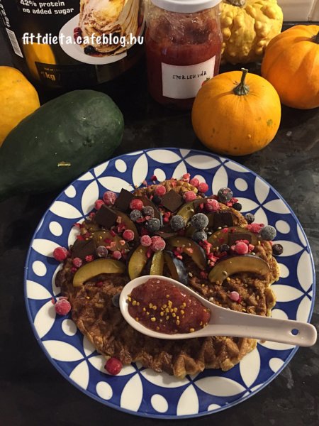 Ha édeset kívánok reggel, akkor vagy palacsinta vagy gofri jön szóba elsőre. Ez a gofri tészta alacsony szénhidrát tartalmú, így diéta esetén is fogyaszthatod. A benne levő cukkini, lassítja a szénhidrát felszívódását. A fehérjepor jobb ízt ad neki, és növelni tudod ezzel a reggelid fehérje tartalmát. A cukkini miatt igazán puha tésztát fogsz kapni, az íze miatt pedig ne aggódj, mert nem lesz cukkini íze a gofriknak.