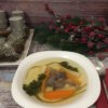A libaaprólékot megmossuk, vízbe tesszük és fel tesszük főni. Amíg fő megpucoljuk a zöldségeket, és csíkokra vágjuk. Ha felforrt a víz, kiszedjük a húst és a májat, és leöntjük a vizet, elmossuk az edényt. Újra teletöltjük vízzel ( 4 liter), és visszarakjuk a húsokat, beletesszük a zöldségeket, fűszerezzük, és letakarjuk fedővel. Alacsony lángon, ügyelve rá, hogy ne forrjon fel, épp csak gyöngyözzön 3-4 órát főzzük.