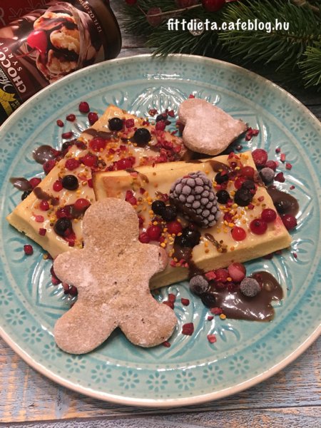 Először készítsük el a cukkini pürét. A cukkinit pucoljuk meg, majd reszeljük le nagy lyukú reszelőn. Ezután pürésítsük egy aprító gépben. Minden hozzávalót keverjünk össze csomómentesre, majd töltsük meg a szilikonos gofri formákat. Előmelegített sütőben 180 fokon 30 percig sütöttem. Ha kihűlt kiszedtem a formából, és a fenn leírtakkal fogyasztottam. A vaníliás pudingot megfőzöm a növényi tejjel, és kevés vízzel. Ezt a gofri tetejére kenem, majd a többi hozzávalót is a tetejére teszem. ( ez természetesen ízlés és diéta szerint bármi lehet)