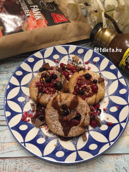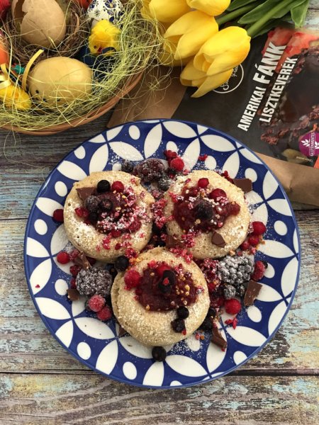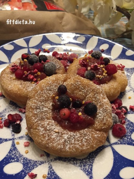 A hétvége Anya lánya programokkal telik, így tudtam, hogy a következő rendelésnél kosárba kerül ez a tojás nélküli fánk lisztkeverék. Még sose próbáltam, de nagyon finom, és igazi fánk ízélményem van. Cukormentes házi eperlekvárral, virágporral, szárított tőzegáfonyával és erdei gyümölcsökkel tálaltam.