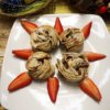 Gyúrjunk minden tészta darabból kis gombócokat, majd sodorjunk belőlük rudakat. Hosszában vágjuk ketté, csavarjuk össze, majd tekerjük fel csiga alakban és tegyük muffin formába.
