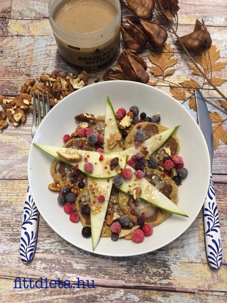 A hozzávalókat tegyük egy aprítógépbe. Tegyük bele a sütőtökpürét, a tojást és a növényi tejet. Turmixoljuk egyneművé. Tegyük át egy tálba a folyékony masszát. Ezután adjuk hozzá az eritritet, a zöldbanán lisztet, a kókuszlisztet, a sütőport, a csipet sót és a vanília aromát. Keverjük csomómentesre a masszát. Pihentessük 5-10 percig. Sűrű palacsinta állagú masszát kell kapnunk. Ha túl sűrű, adjunk hozzá egy kevés vizet vagy növényi tejet. Kókuszolajjal kikent serpenyőbe kanalazzunk egy –egy púpos evőkanálnyi masszát. Közepes lángon süssük készre a palacsinták mindkét oldalát. A fenn leírtakkal tálaljuk a palacsintáinkat.