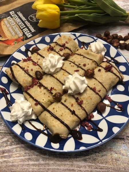 Egy ideje nem eszek édeset, főleg nem reggelire, de ma kedvem támadt egy kis palacsintázáshoz. A palacsintákat paleo vaníliás pudinggal és banánnal töltöttem. Ez a isteni, gluténmentes,cukormentes, laktózmentes és nem szakad, nem tapad, nem ragad. A mindenmentes palacsinták tudják nálam a legtöbb bosszúságot okozni, bár ezzel szoktam a legtöbbet kísérletezni.