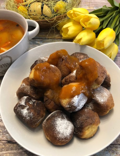 Cukormentes baracklekvárral tálaltam. (recept ITT) Ebédre készítettem a bableves mellé.