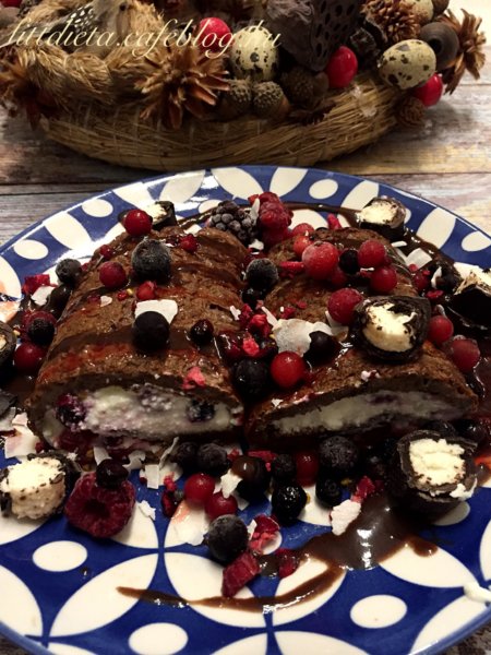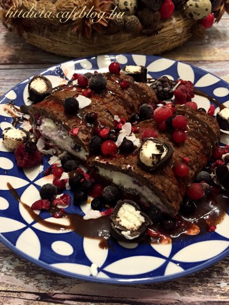 A palacsinta hozzávalóit csomómentesre keverjük. Egy palacsinta sütőben kevés kókuszolajat teszünk, és közepes lángon megsütjük a palacsintát. Ha az egyik oldala megsült, óvatosan megfordítjuk, és a másik oldalát is megsütjük. Egy palacsinta lesz ebből a mennyiségből, de vastagabb. Közben elkészítjük a tölteléket. A túrót a natúr joghurttal krémesre keverjük, és ízlés szerint ízesítjük eritrittel, vaníliás eritrittel. A palacsinta tetejét megkenjük a túróval, megszórjuk az erdei gyümölccsel, és feltekerjük. A palacsintát középen elvágjuk. A tetejét díszítjük a fent felsoroltakkal, vagy ízlés szerint bármivel ami éppen van otthon, belefér a diétába, és szeretjük.