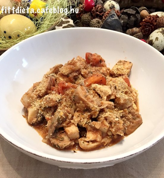 A csirkemellet apró kockákra vágjuk. Én wokban készítettem, így nem használtam zsiradékot. A csirkemellet fehéredésig pirítottam, és egy kevés vizet öntöttem alá. A gombának eltávolítottam a törzsét, és hozzáadtam a csirkemellhez. Majd az apróra vágott paradicsomot, a paradicsompürét, és ízlés szerint fűszereztem, A barna rizst a zacskón levő utasítás szerint megfőztem, és azt is hozzákevertem. Végül belekevertem a sörélesztő pelyhet is, és alacsony lángon 10 percig főztem. A tetejét tálaláskor megszórtam még sörélesztő pehellyel.
