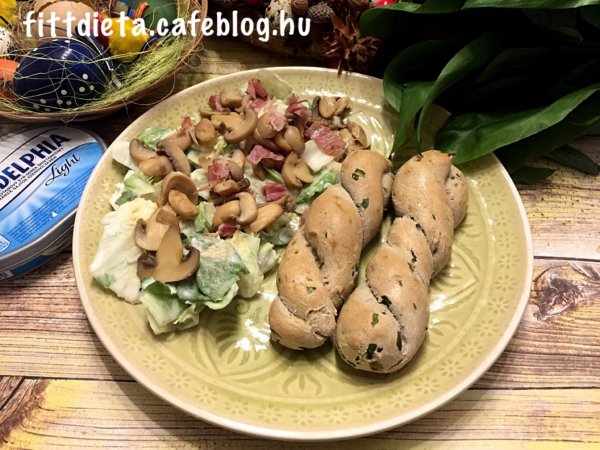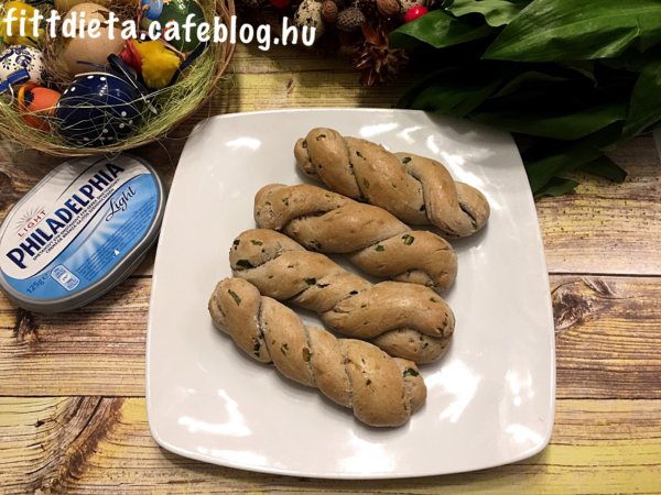 A folyékony hozzávalókat összekeverjük, majd hozzáöntjük a lisztet. Az újhagymát, bébispenótot, medvehagymát megmossuk, apróra vágjuk, és belekeverjük a tésztába. A tésztát összegyúrjuk, majd hűtőben 15 percig pihentetjük. Ezután 8 darabra osztjuk a tésztát, és hengereket formázunk belőle. Kettesével összefonjuk őket, majd szilikonos ecset segítségével lekenjük tojással. Előmelegített sütőben 180 fokon 35 perc alatt készre sütjük. Reggelire fogyasztottam light vajkrémmel, és egy nagy adag salátával. A saláta receptjét ITT megtaláljátok! ( A saláta nem paleo)